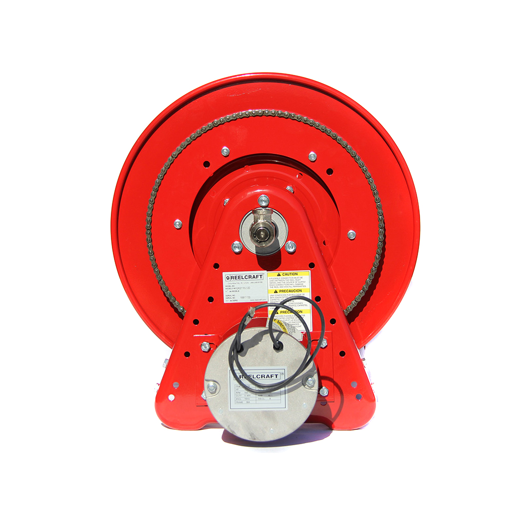 Motor options - Multiple motor options provide an easy method to rewind long lengths of hose.